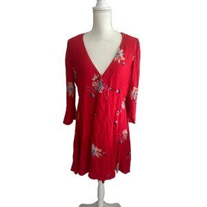 FREE PEOPLE Red Floral Button Detail Long Sleeve Dress Size Medium
