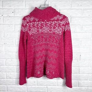 FREE PEOPLE Red Turtleneck/Cowl neck Fair Isle Sweater | Wool