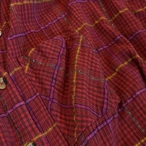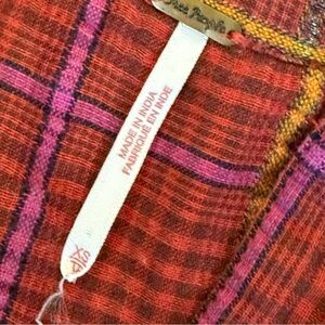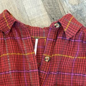 FREE PEOPLE Red and Yellow Plaid Button-Up Lightweight Oversized Shirt Size XS