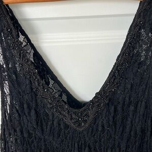 FREE PEOPLE Rendezvous Black Stretch Lace Dress w/ Beaded Trim SZ L