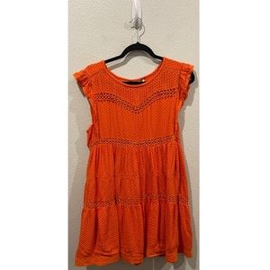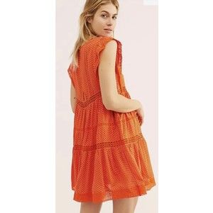 FREE PEOPLE Retro Kitty Crochet Trim Tangerine Mini Dress. Size S