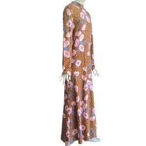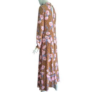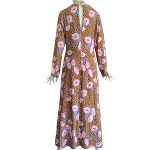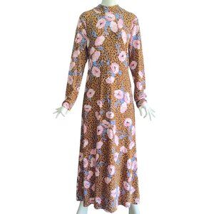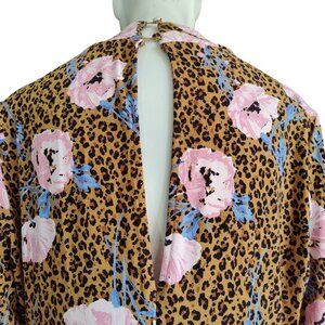 FREE PEOPLE Retro Romance Molly Cheetah Floral Mock Neck Stretch Dress L