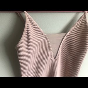 Free People adorable pale pink tank! Mesh accent on the chest. Stretchy material: very comfy! Barely worn and in great condition.