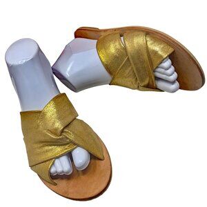 FREE PEOPLE Rio Vista Gold Leather Sandal Slides