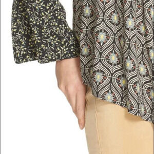 FREE PEOPLE Rolling Hills Bell Sleeve Floral Boho Tunic Festival Blouse