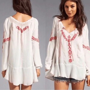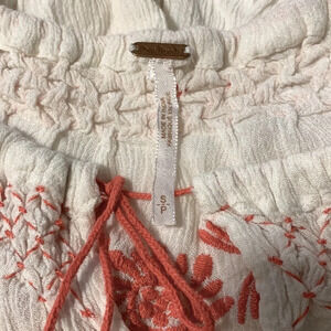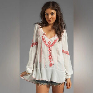 FREE PEOPLE Rolling Stone Woven Top in White Combo