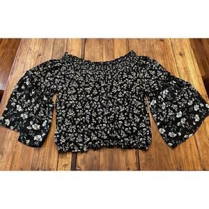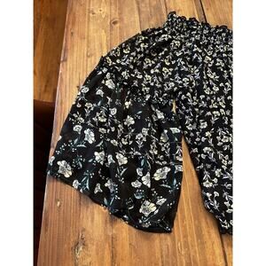 FREE PEOPLE Rose Valley Floral Smocked Peasant Bohemian Blouse Size Medium