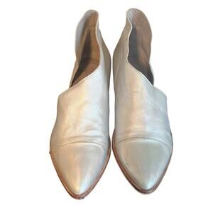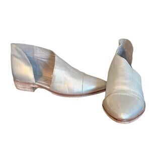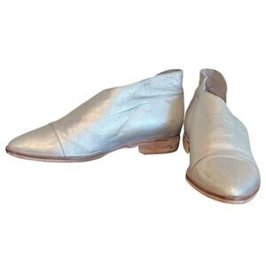 FREE PEOPLE Royale Silver Asymmetric Leather D’Orsay Flat Bootie Shoe Women’s Size 6
