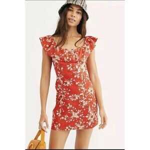 FREE PEOPLE Ruby Fiore Mini Dress Floral Red Size 6