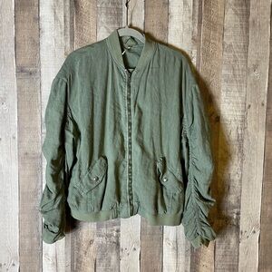 FREE PEOPLE Ruched Linen Bomber Jacket