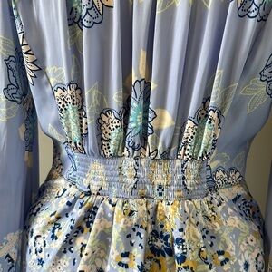 FREE PEOPLE Run Free Blouse Periwinkle Ruffle Floral Long Sleeve Sz S