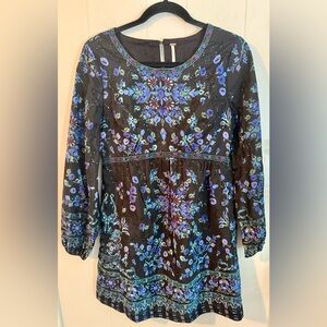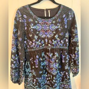 FREE PEOPLE Russian Doll Black Floral Sequin Dress Size 2