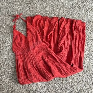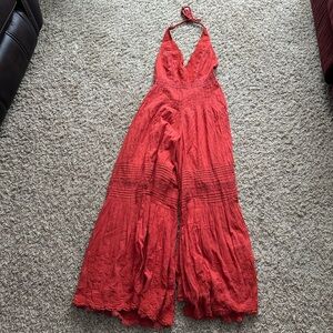 FREE PEOPLE Rust Orange Halter Wide Leg Lace Embroidered Jumpsuit