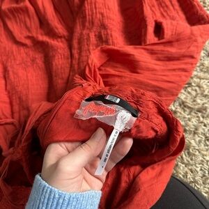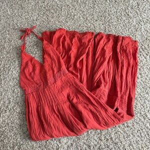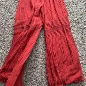 FREE PEOPLE Rust Orange Halter Wide Leg Lace Embroidered Jumpsuit