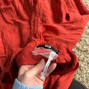 FREE PEOPLE Rust Orange Halter Wide Leg Lace Embroidered Jumpsuit