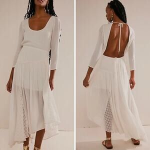 FREE PEOPLE SEA ME MAXI- LACED OPEN TIE BACK- NWOT- IVORY- SZ:M Ret$198