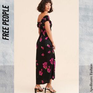 FREE PEOPLE SHE’S A DREAM MAXI DRESS SP IN BLACK COMBO PINK FLORAL PRINT NWOT