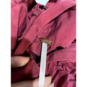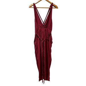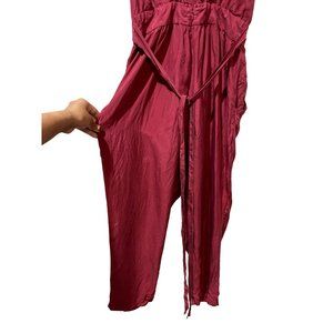 FREE PEOPLE SHINY RED BURGUNDY V Neck Sleeveless JUMPSUIT WAIST TIE WOMANS 6 N1