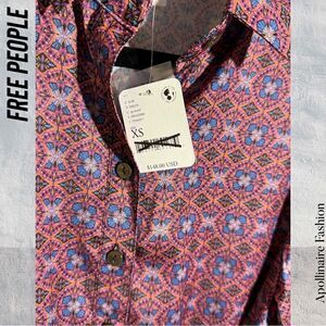 FREE PEOPLE SILKY RILLO SHIRTDRESS NWT XS PURPLE PLUM MOTIF