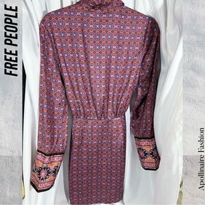 FREE PEOPLE SILKY RILLO SHIRTDRESS PLUM PURPLE COMBO NWT XS