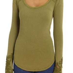 FREE PEOPLE SIZE MEDIUM WASHED OLIVE MASQUERADE CUFF LONG SLEEVE THERMAL TOP