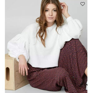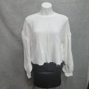 White Raw edge reverse French terry cropped sweatshirt with pleated dolman sleeves top. Size L, pre-owned in great used condition.