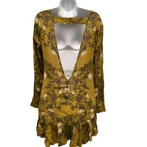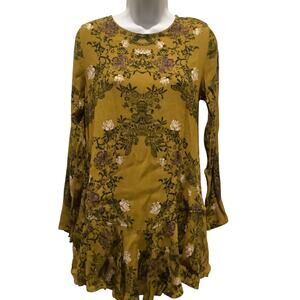 Elevate your style with this gorgeous Free People "Smooth Talker" tunic or mini dress! This piece features a captivating floral print set against a vibrant green and gold background, perfect for adding a pop of color to your wardrobe.