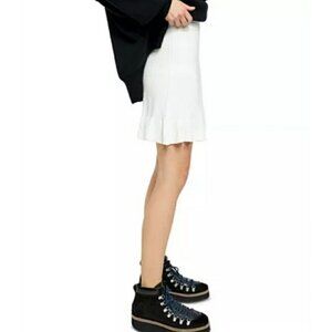 FREE PEOPLE SOLID CREAM RIBBED SKIRT Pull On closure 58% Cotton, 40% Viscose, 1% Nylon, 1% Elastane Hand Wash Cold | Imported A ribbed knit mini skirt with a flounce hem OB1010824 NEW WITH TAGS