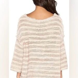 Super cool Free People Spells Trouble slouchy sweater, size small. It's in great condition! It has no stains or flaws. Black & white marled stripes and fringed/frayed all over. It has a v neckline and a relaxed oversized fit.