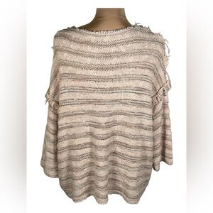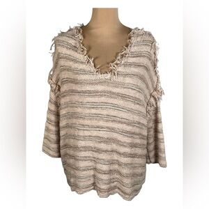 FREE PEOPLE SPELLS TROUBLE BROWN & BEIGE DISTRESSED RAW SWEATER