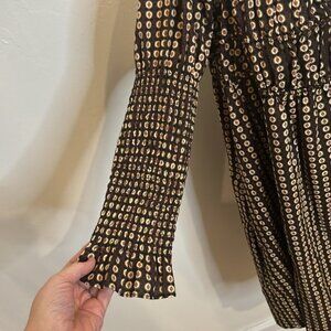 FREE PEOPLE STAR DIP TIERED SMOCKED BUTTON FRONT COTTON DRESS LARGE