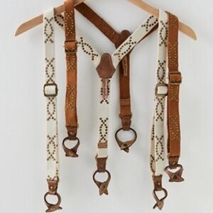 So sophisticated and menswear-inspired, these chic suspenders feature thin cotton straps and stunning stud embellishments with soft leather details and three snap button attachments.