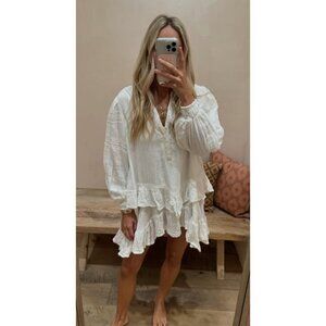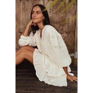 FREE PEOPLE Sachi Long Sleeve Ruffle Minidress in Ivory Size Small