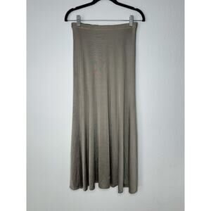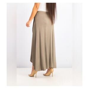 Features a soft and flowy stretchy jersey fabric with elastic waist, tulip style wrap design and maxi skirt length. Color is a light army green. Size is womens extra small.