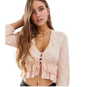 FREE PEOPLE Samifran Long Sleeve Peach Cropped Blouse