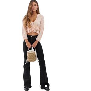 FREE PEOPLE Samifran Long Sleeve Peach Cropped Blouse - Size Large