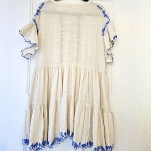 FREE PEOPLE Santiago Cream Dress with Blue Embroidery Sz Medium