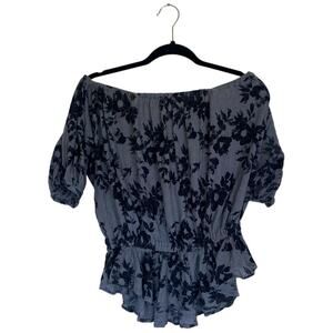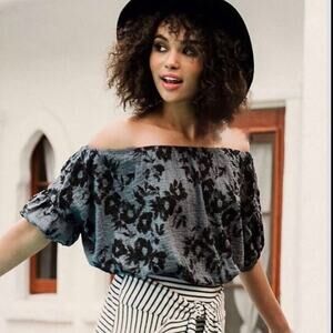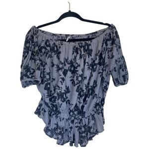 FREE PEOPLE Shades of Cool Off the Shoulder Blouse Top Floral Gray Size Small