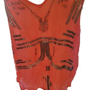 FREE PEOPLE Sheer Orange Beaded Racerback Tank Top M Summer Beach