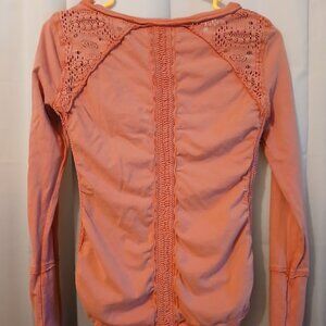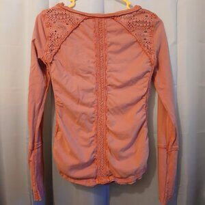FREE PEOPLE Shell Lace Henley T-shirt Top XS Pink Scoop neck Gold Coast LS