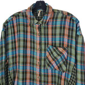 FREE PEOPLE Shirt Womens XS Multicolor Tartan Plaid Casual Button Down Boho