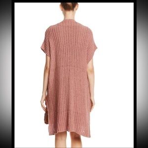 FREE PEOPLE Short Sleeve Sweater Long Open Cardigan Oversized Pockets Mauve Rose