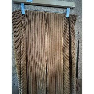FREE PEOPLE Slim Velvet Stripe Pull On Flare Pant M Stretch Golden Tan