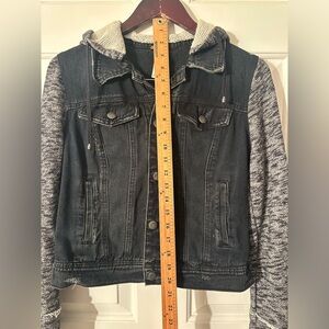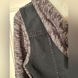 FREE PEOPLE Small Distressed Boho Knit Hooded Moto Jean Jacket Gray Black
