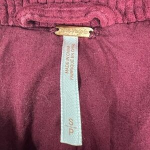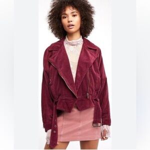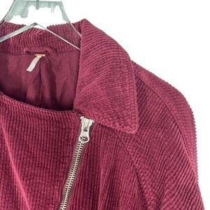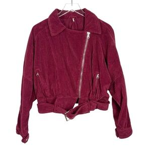 FREE PEOPLE Small Wine Burgundy Slouchy Corduroy Assymetrical Zip Crop Jacket