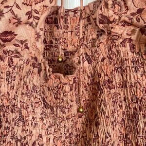 FREE PEOPLE Smock it to Me Mini Dress Apricot Ruffle Peasant Boho Size Large