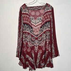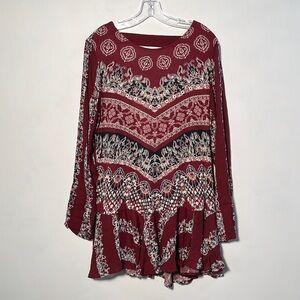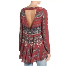 FREE PEOPLE Smooth Talker Boho Floral Print Open Back Long SLV Tunic/Dress SZ M