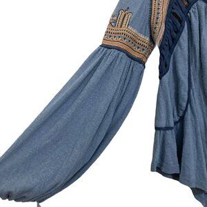Free People Snow Kisses Embroidered Balloon Sleeve Boho Peasant Top