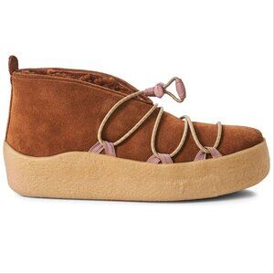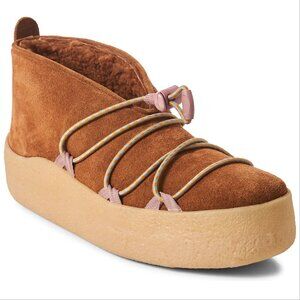 FREE PEOPLE Snowdrop Micro Genuine Shearling Boots Size 8 Brown Suede EUC
