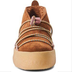 Channel cozy and wintry style in this abbreviated boot shaped from smooth suede and lined with perfectly plush shearling.
